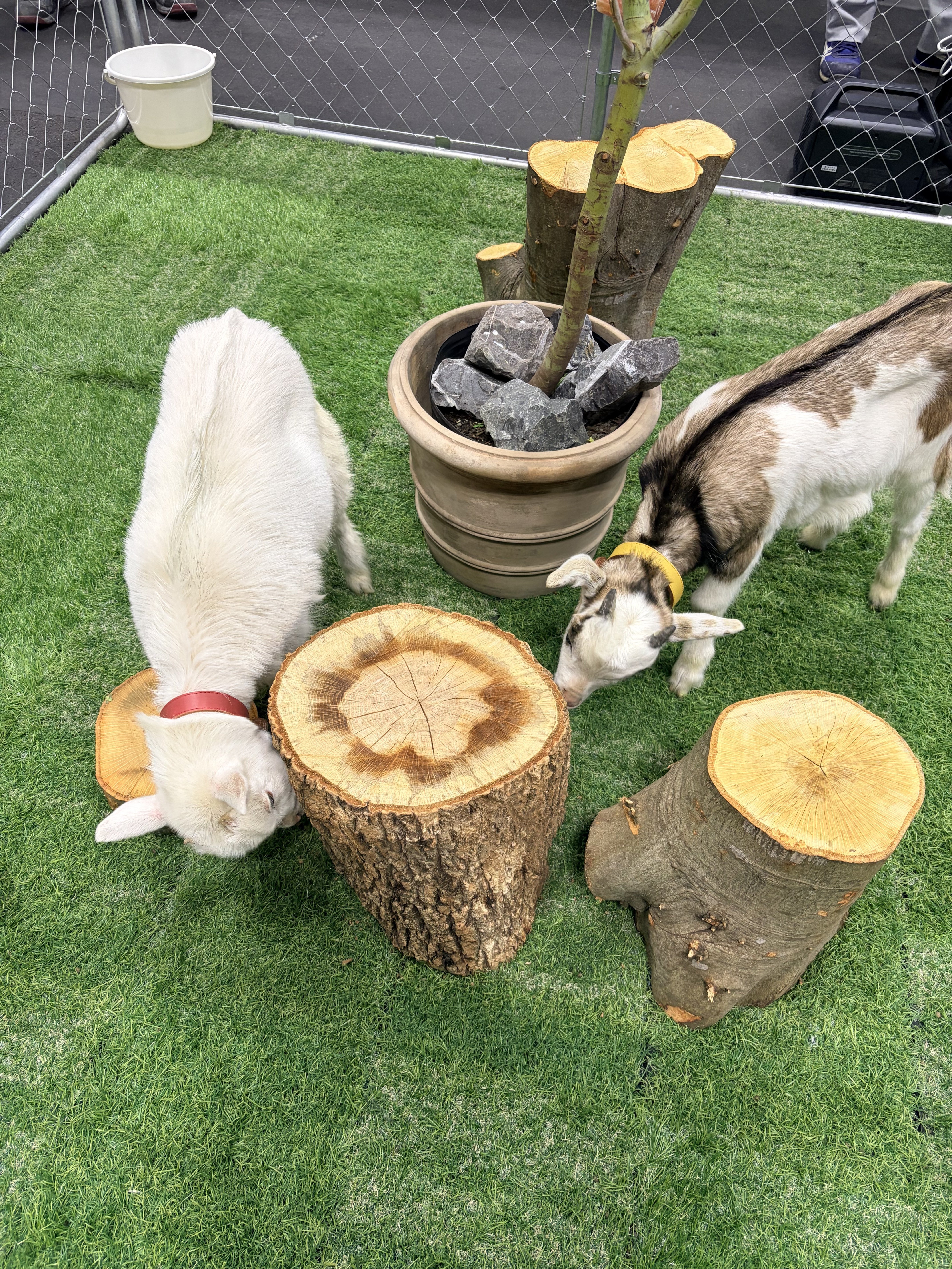 先日岡山のイベントホールに入った際に、隣のブースにヤギがいました~!